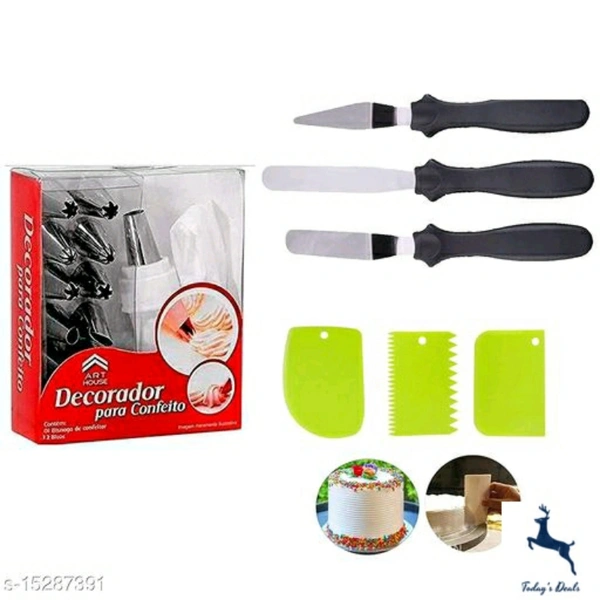 12 Piece Cake Decorating Set Frosting Icing Piping Bag Tips with Steel Nozzles, 3 side scraper, 3 in 1 spatula knife set
