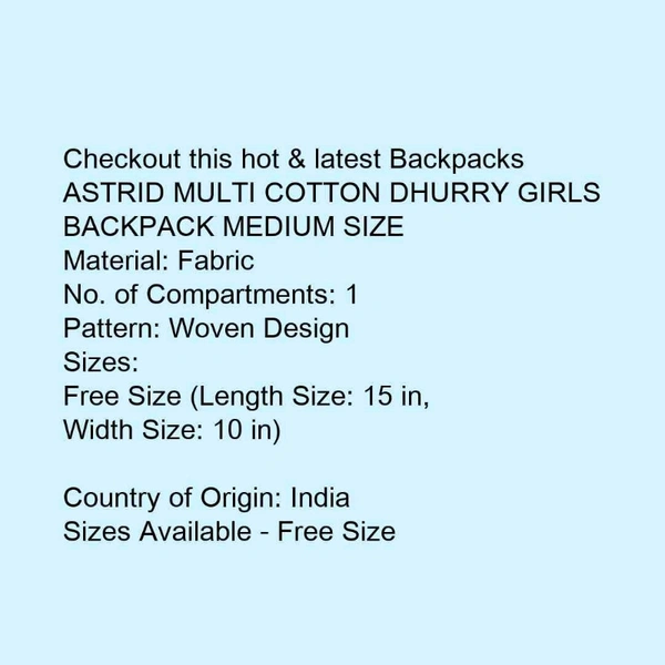 ASTRID MULTI COTTON DHURRY GIRLS BACKPACK MEDIUM SIZE