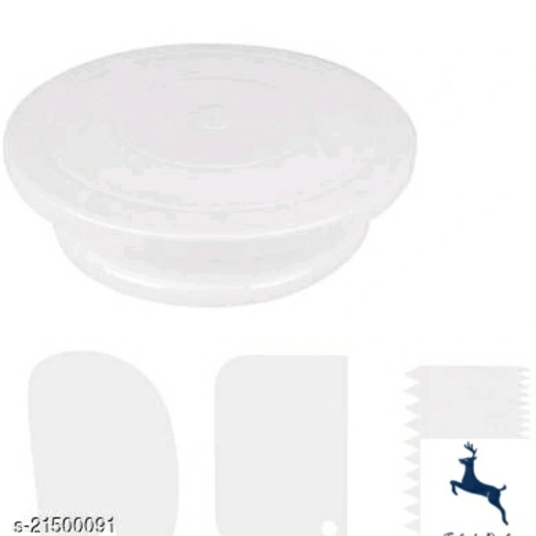 Combo Set of Plastic Revolving Turn Table Cake Stand with 3 Scrapper, White