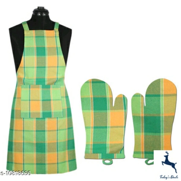 Aprons & Mittens, Material: Cotton, Pattern:Printed, Apron Size 60X 85 cm, Oven Glove size 10x32 cm, Pack: Pack of 3, Dispatch: 2-3 Days.