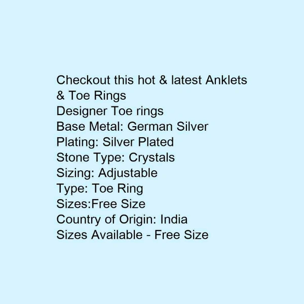 Shimmering Fancy Women Anklets & Toe Rings, Base Metal: German Silver, Plating: Silver Plated, Stone Type: Crystals, Sizing: Adjustable, Type: Toe Ring, Multipack: 1, Sizes: Free Size, Dispatch: 2-3 Days.