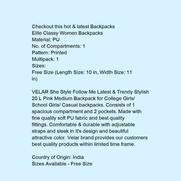 Ravishing Fancy Women Backpacks, Material: PU, No. of Compartments: 1, Pattern: Printed,Solid, Multipack: 1, Sizes: Free Size.