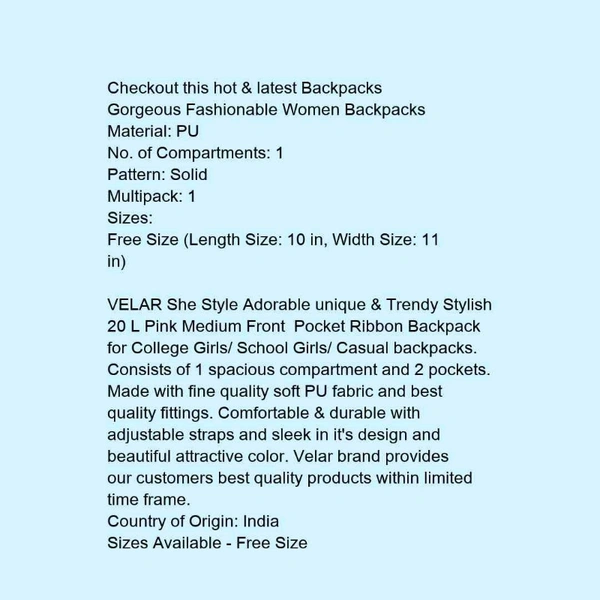 Ravishing Fancy Women Backpacks, Material: PU, No. of Compartments: 1, Pattern: Printed,Solid, Multipack: 1, Sizes: Free Size.