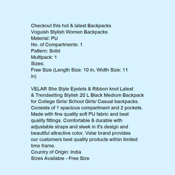 Ravishing Fancy Women Backpacks, Material: PU, No. of Compartments: 1, Pattern: Printed,Solid, Multipack: 1, Sizes: Free Size.